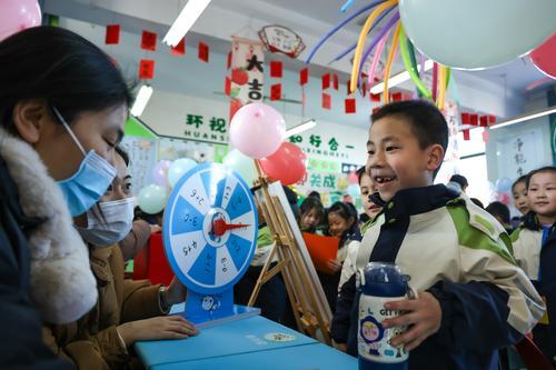 图② 1月7日,丰泽园小学的学生兴致勃勃地开启闯关之旅。焦作日报全媒体记者 贺 珺 摄
