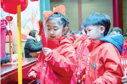 图③ 1月8日,映湖路小学的学生在游戏中体验、在体验中收获。张依雯 摄
