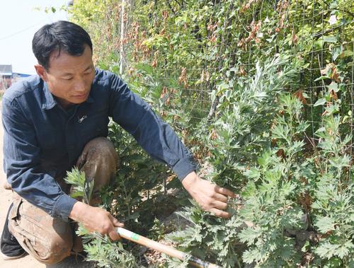 王新军在收割艾草。