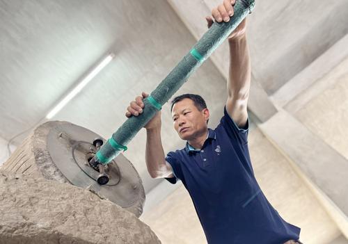 正因为出生于世家,相较其他同行,王新军多了一分守护和传承古法技艺的初心。在他的心中,唯有精准把握磨、杵、筛,并将传统手法融于制作每一个环节,才能制作出柔软如云、精细如絮的高品质艾绒。为了确保最终成品的纯净,整个制作过程不会接触金属,均采用低温、低速的传统制作手法。