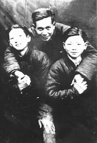 1942年冬,何仿(右一)与新四军淮南大众剧团团长何秋征(中)、胞兄(左一)何捷明。 六合区档案馆供图
