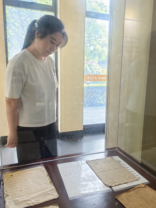市民在《茉莉花》史料馆观看何仿手稿。 金陵晚报记者 孙敬清 摄
