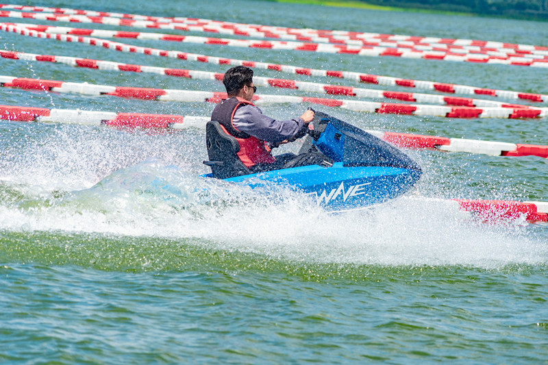 金牛湖景区推出卡丁船项目受游客追捧。图片由金牛湖旅游度假区管理办公室提供