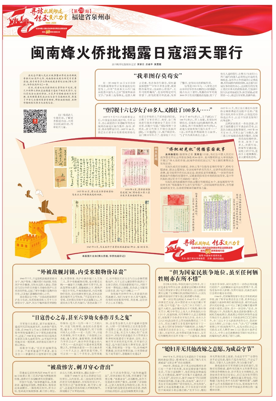 日前,为纪念中国人民抗日战争暨世界反法西斯战争胜利80周年,泉州黎明职业大学实践队开展以“烽火里的侨批:闽南华侨的抗战记忆”为主题的暑期社会实践活动。