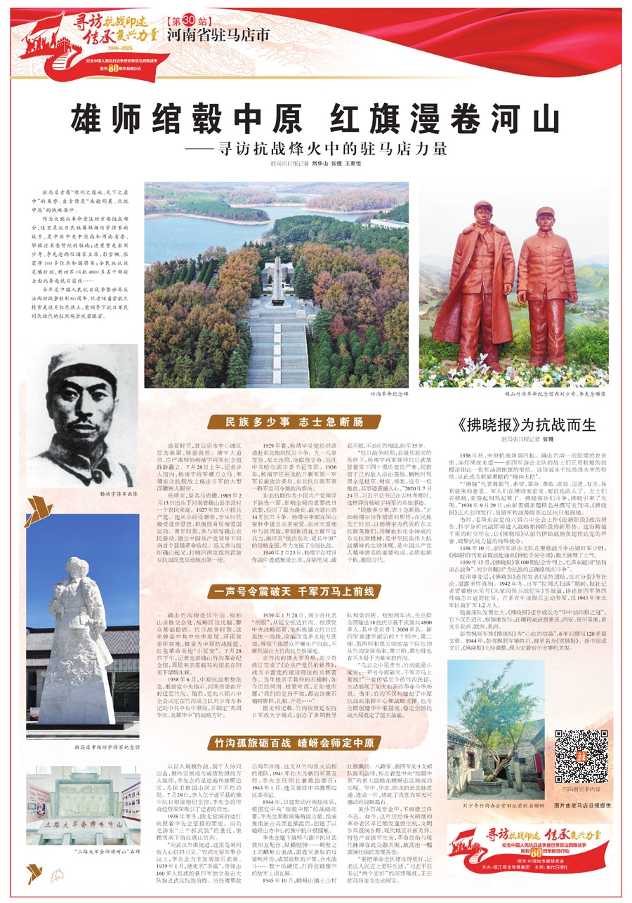 “乌云之中见青天,竹沟就是小延安;一声号令震破天,千军万马上前线!”一首传唱至今的竹沟民谣,生动展现了如火如荼的革命斗争场景。当年,竹沟不仅构建起了中原抗战的指挥中心和战略支撑,也为全面创建华中根据地、稳定全国抗战大局奠定了坚实基础。