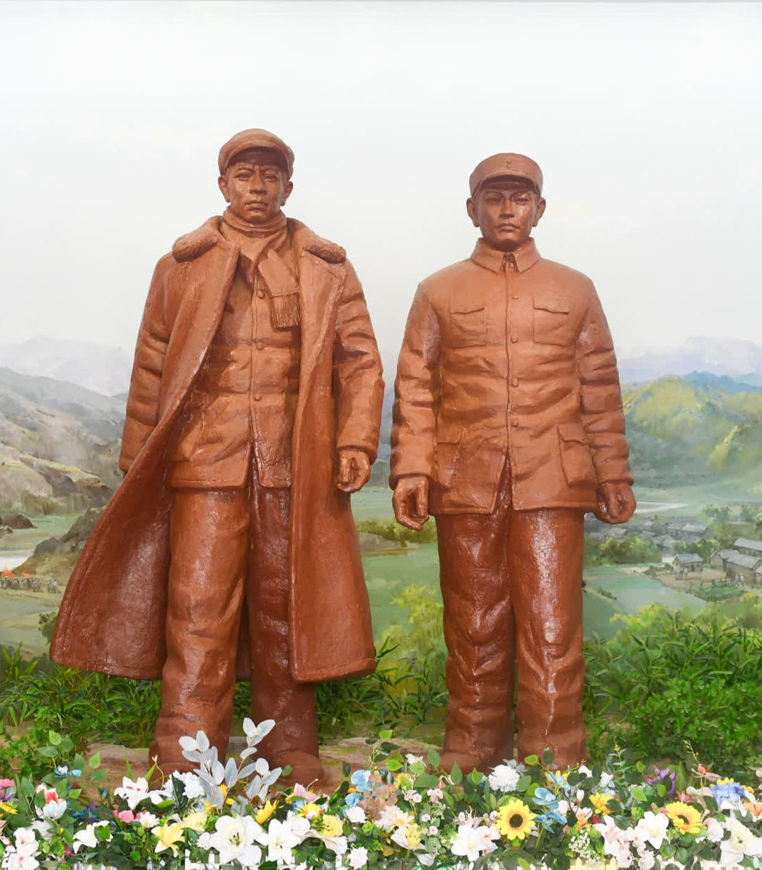 确山竹沟革命纪念馆内刘少奇、李先念雕像