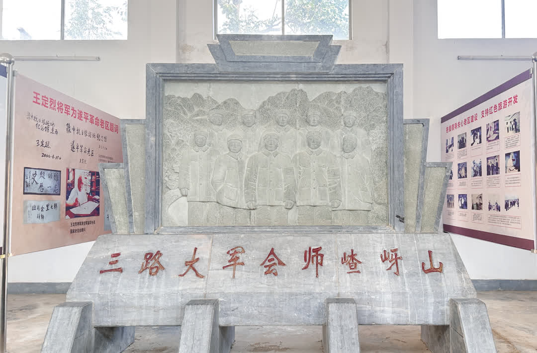 1945年10月,嵖岈山镇土山村红旗飘扬。八路军、新四军的3支部队胜利会师,标志着党中央“绾毂中原”的重大战略在嵖岈山区成功实现。华中、华北、陕北自此血脉贯通、连成一片,铸就了我党我军无可撼动的战略基石。