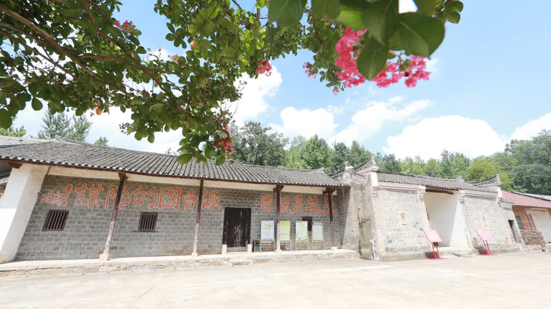 这里距京山城区25公里。当记者驱车驶入小焕岭村,满目葱茏的山坡上,一排醒目的红色大字撞入眼帘——“边区小延安,红色小焕岭”。沿着石板路前行,两幢青砖黛瓦的清末民居静静矗立。门楣上悬挂的红底金边牌匾题写着“中共豫鄂边区委员会旧址”。斑驳墙壁上,繁体字的标语依然闪耀着抗战精神的光芒。