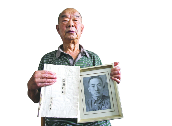 李汝江拿着父亲李宏毅照片和《征途札记》。王红强 摄