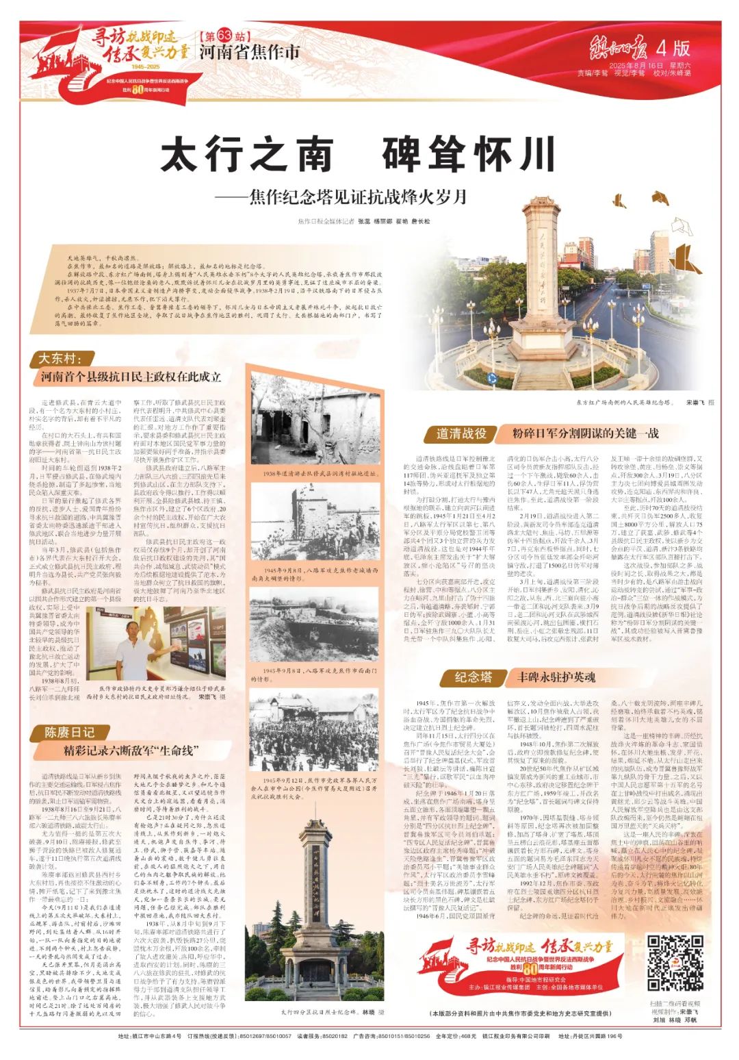 这是一座人民的丰碑。深嵌在焦土中的弹痕,回荡在山谷里的呐喊,矗立在人民心中的纪念碑,凝聚成怀川儿女不屈的民族魂,持续传递着穿越时空的精神火炬。80年后的今天,太行南麓的焦作以山河为卷、奋斗为笔,将烽火记忆转化为复兴力量,高质量发展、高效能治理、乡村振兴、文旅融合……怀川大地在新时代正焕发出磅礴伟力。