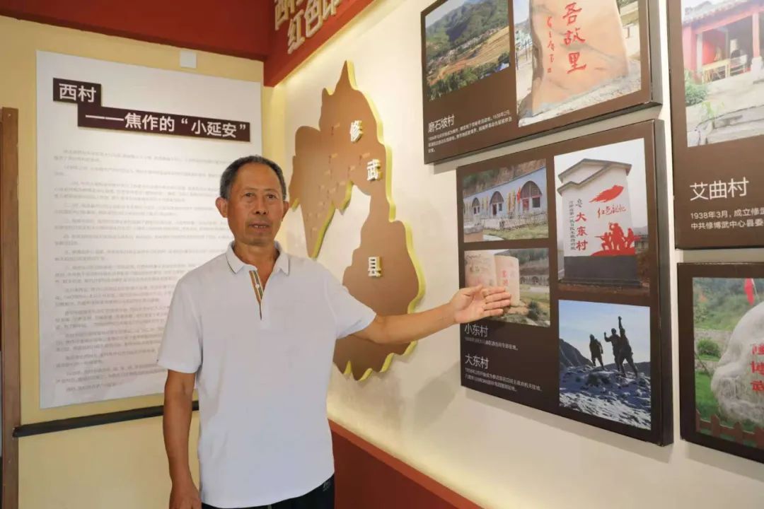 焦作市政协特约文史专员郑乃谦介绍位于修武县西村乡大东村的抗日民主政府旧址情况。焦作日报全媒体记者 宋崇飞 摄