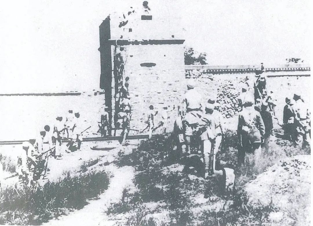 1945年9月8日,八路军攻克焦作老城墙西南角大碉堡的情形。