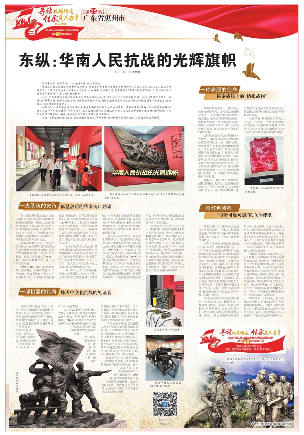 讲解员陈慧钰介绍,广东人民抗日游击队东江纵队,是在抗日战争进入战略相持阶段后由中国共产党创建和领导的一支敌后抗日武装。虽然其正式成立于1943年12月,但早在1938年就开展了抗日武装斗争。