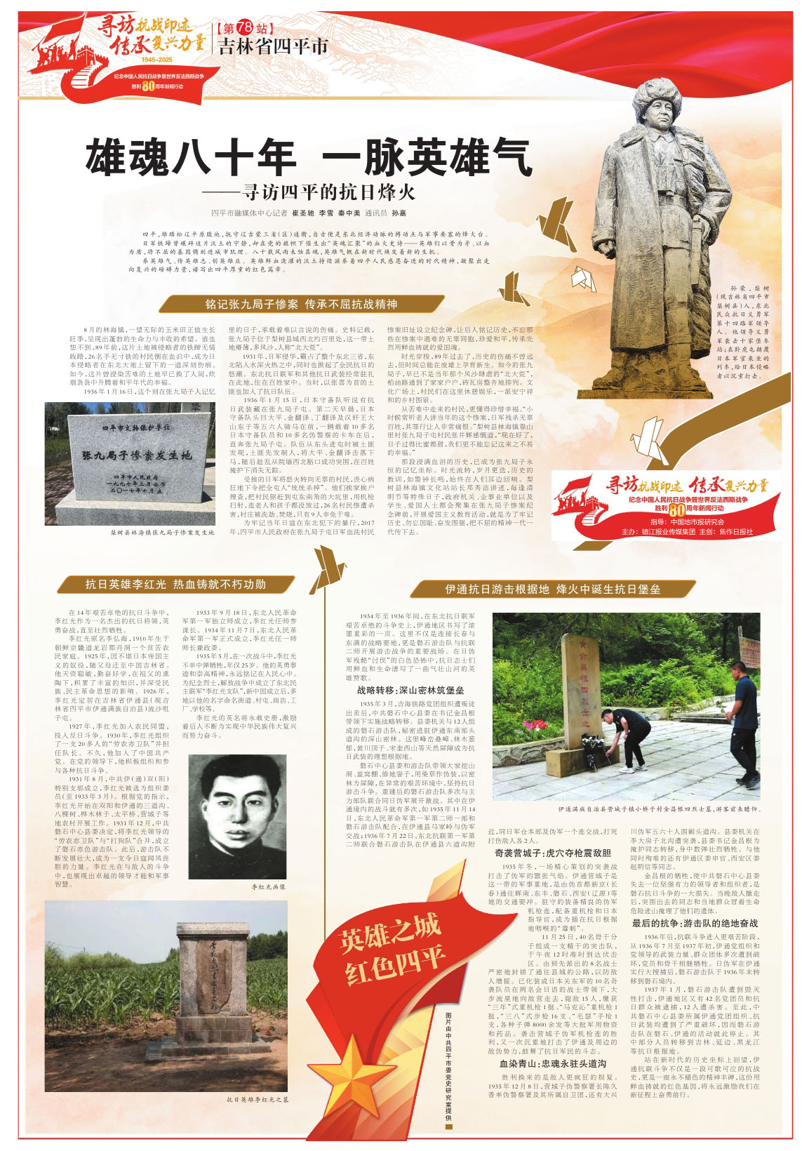 养英雄气、传英雄志、创英雄业。英雄鲜血浇灌的沃土持续滋养着四平人民感恩奋进的时代精神,凝聚出走向复兴的磅礴力量,谱写出四平厚重的红色篇章。