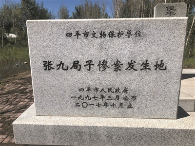 为牢记当年日寇在东北犯下的暴行,2017年,四平市人民政府在张九局子屯日军血洗村民惨案旧址设立纪念碑,让后人铭记历史,不忘那些在惨案中遇难的无辜同胞,珍爱和平,传承先烈用鲜血铸就的爱国魂。