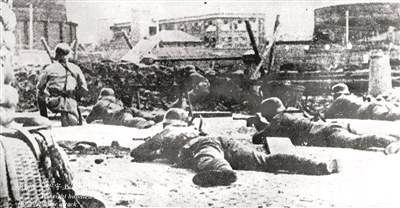 当日清晨,第一股日军开始向四行仓库进攻。“八百壮士”早有准备,掩体内埋伏的步枪、楼顶上架设的机枪一齐开火。短短十几分钟,20多名日本士兵被全部消灭。