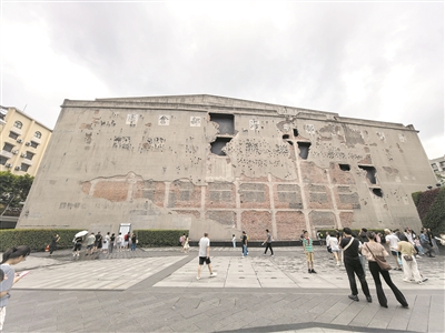 上海四行仓库抗战纪念馆布满弹孔的西墙咸宁日报全媒体记者 刘震 摄