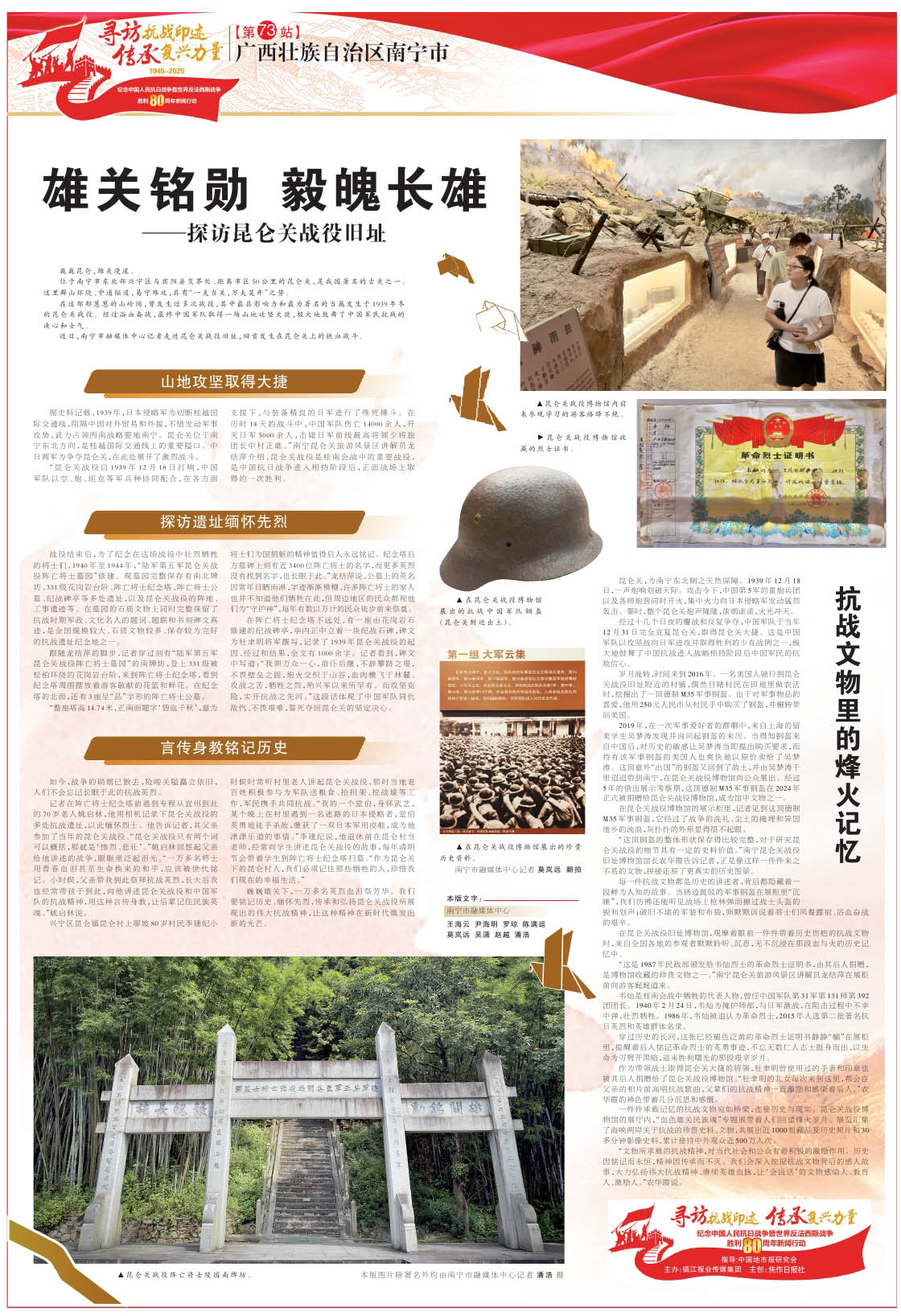 巍巍雄关下,一万多名英烈血泪祭芳华。我们要铭记历史、缅怀先烈,传承和弘扬昆仑关战役所展现出的伟大抗战精神,让这种精神在新时代焕发出新的光芒。