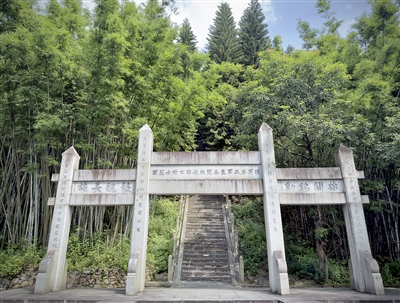 跟随龙结萍的脚步,记者穿过刻有“陆军第五军昆仑关战役阵亡将士墓园”的南牌坊,登上331级被松柏环绕的花岗岩台阶,来到阵亡将士纪念塔,看到纪念塔周围摆放着游客敬献的花篮和鲜花。在纪念塔的北面,还有3座呈“品”字形的阵亡将士公墓。