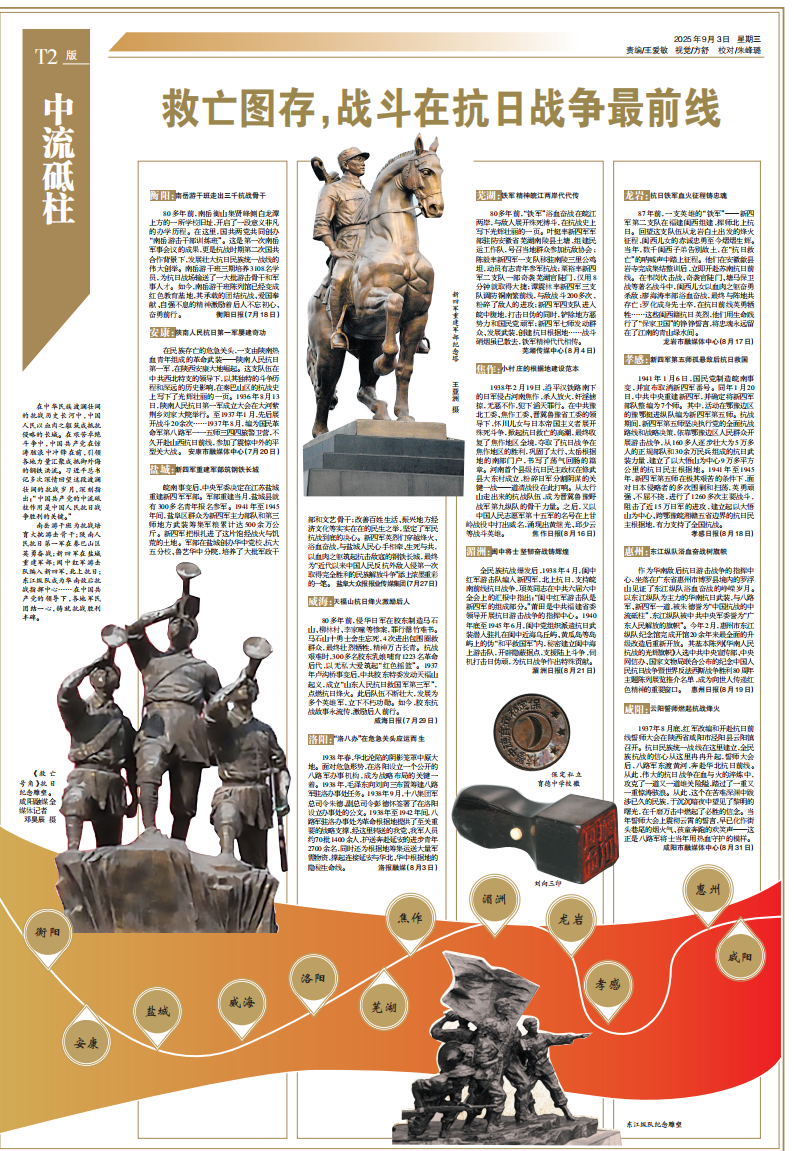 在中华民族波澜壮阔的抗战历史长河中,中国人民以血肉之躯筑成抵抗侵略的长城。在艰苦卓绝斗争中,中国共产党在惊涛骇浪中冲锋在前,引领各地力量汇聚成抵御外侮的钢铁洪流。习近平总书记多次深情回望这段波澜壮阔的抗战岁月,深刻指出:“中国共产党的中流砥柱作用是中国人民抗日战争胜利的关键。”