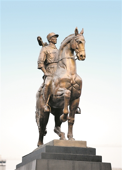 《救亡号角》抗日纪念雕塑。咸阳融媒全媒体记者 邓昊辰 摄