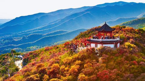 10月21日,中站区龙翔街道窄门景区满山红叶美景如画,成为各地游客秋季赏红叶的最佳观赏地之一。在阳光照耀下,通透的红叶热情似火,数十公里长的“太行天路”从层林尽染的群山中穿过,宛若一幅绝美的画卷。