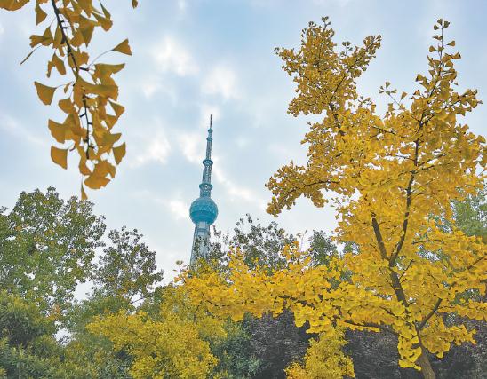 市龙源湖公园内的银杏树。 记者 赵改玲 摄