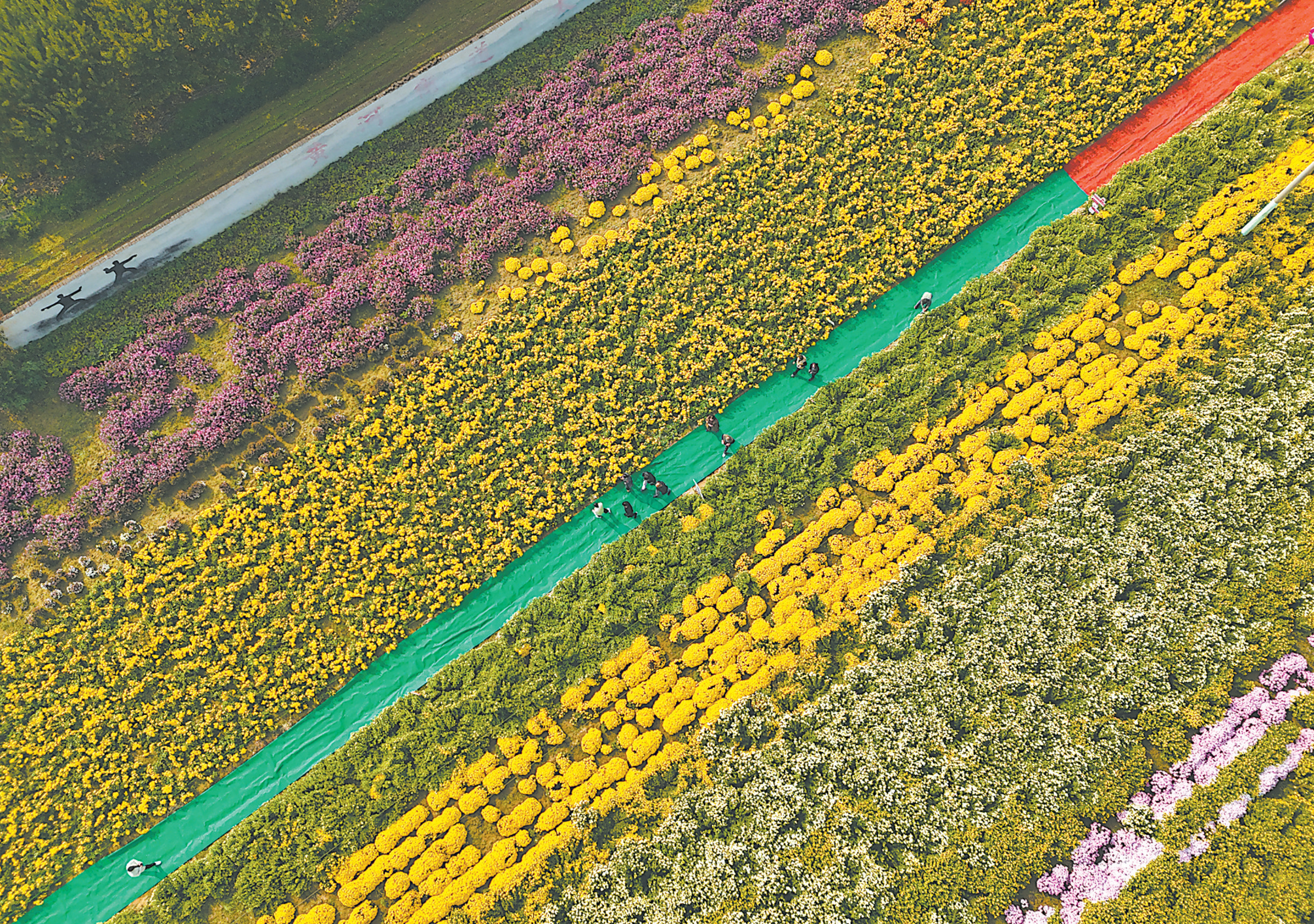 近日,在温县黄河街道下石井村太极庄怀药小镇七彩菊园里,千姿百态的菊花悄然盛放。