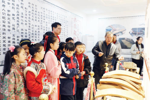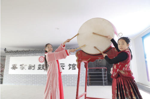 学生们在乔家制鼓展示馆参观。