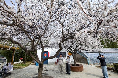 3月9日,博爱县柏山镇义沟村义沟苗圃内,两株25年树龄的杏树进入盛开期,吸引游客纷至沓来。程 全 摄