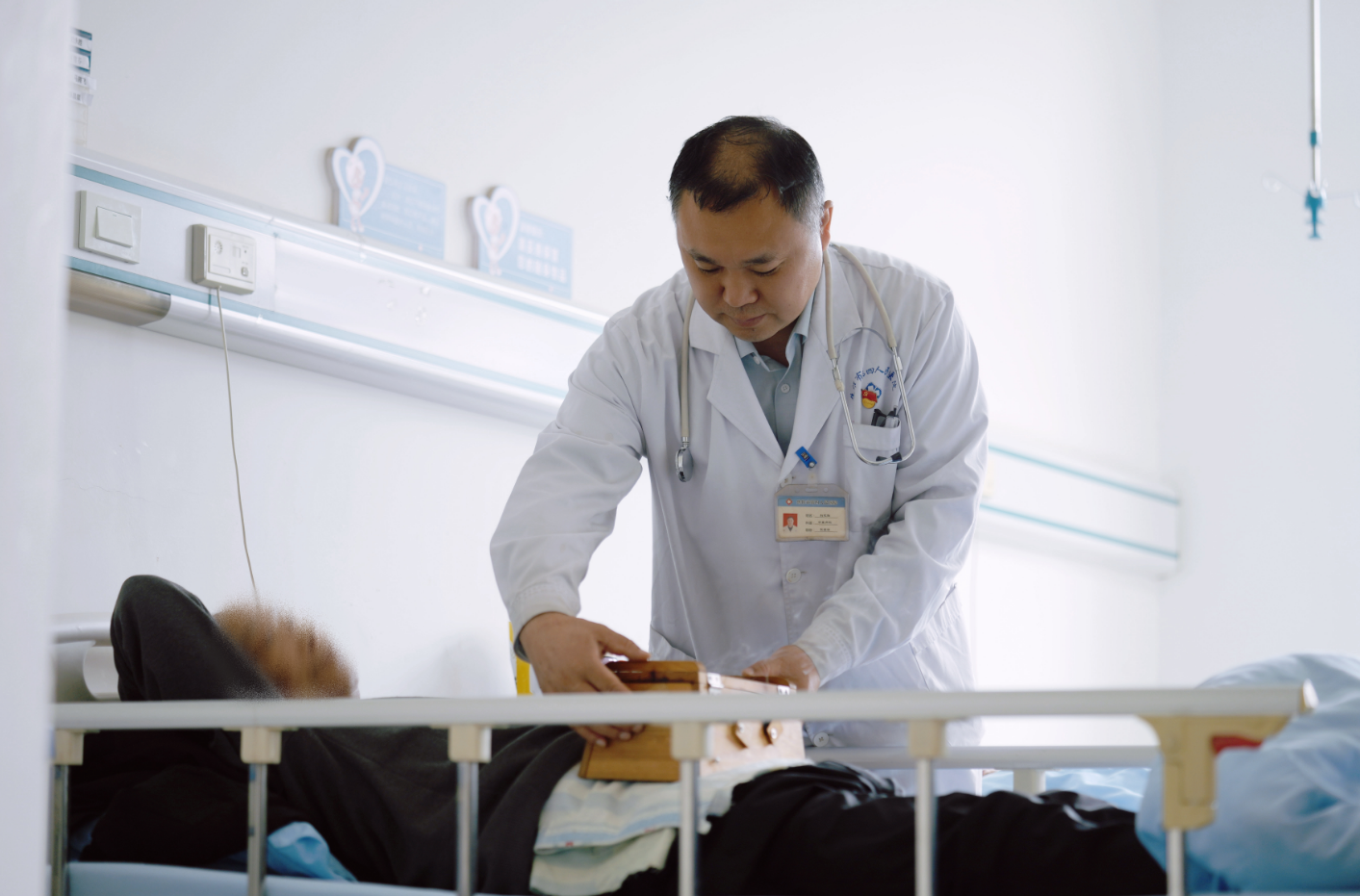 市第四人民医院中医内科主任刘永胜为患者做中医艾灸治疗。