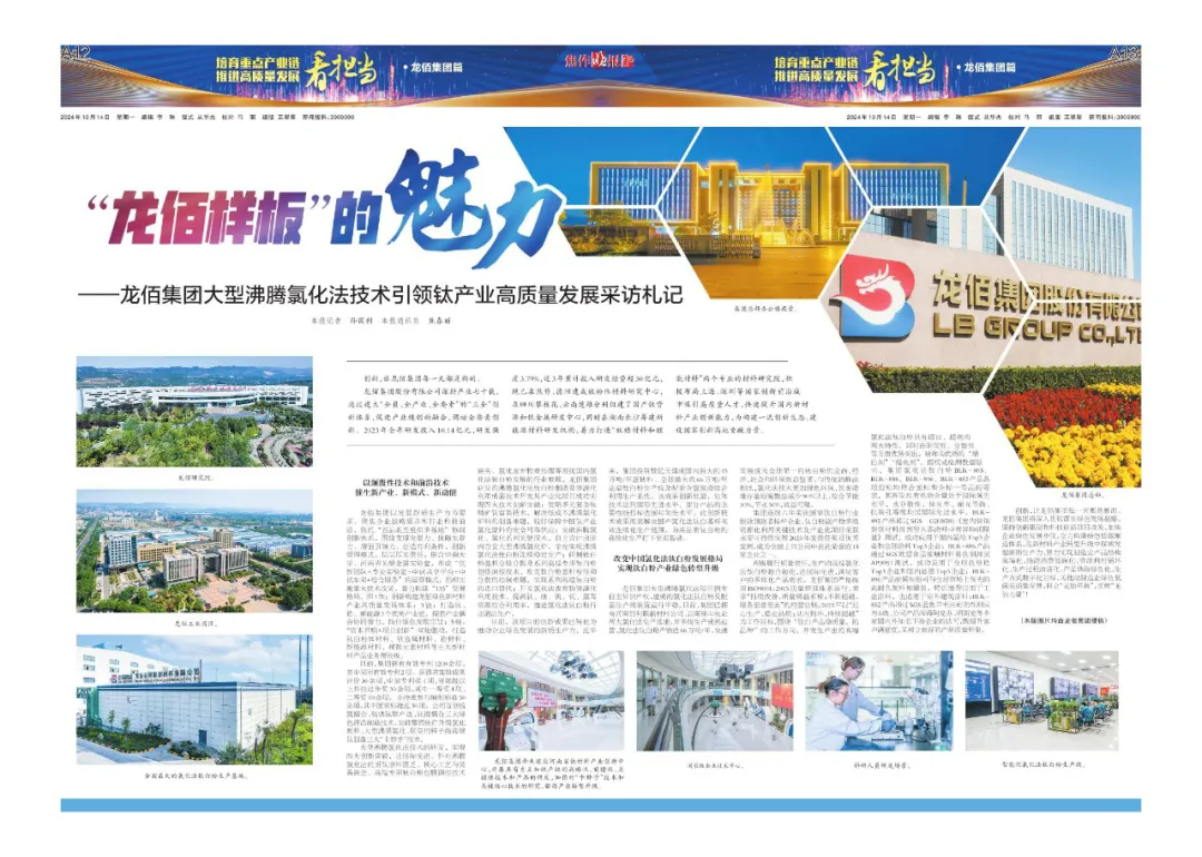 目前,该项目的创新成果已转化为推动企业绿色发展的新质生产力。近年来,集团投资数亿元建成国内最大的45万吨/年富钛料、全球最大的66万吨/年高端钛白粉生产线及配套含氯废渣综合利用生产系统。该成果创新性强,总体技术达到国际先进水平,部分产品的主要性能指标达国际领先水平。此创新技术成果彻底解决国产氯化法钛白基料高效连续化生产瓶颈,为高品质钛白粉的连续化生产打下坚实基础。